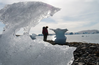 musket shot, as ice splits and shears away from the huge glaciers a kilometre so so out in the fjord, each creating a mini tsunami.